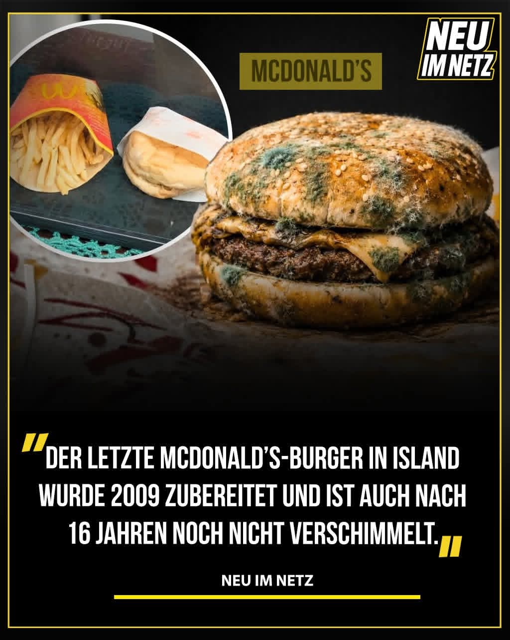 Dieses Bild hat weltweit für Staunen gesorgt und eine Diskussion darüber ausgelöst, was eigentlich in Fast Food steckt. Die unnatürliche Haltbarkeit des Burgers gilt vielen als Sinnbild für starke Verarbeitung und chemische Konservierung und macht deutlich, wie weit manche moderne Lebensmittel von echter Frische entfernt sind.