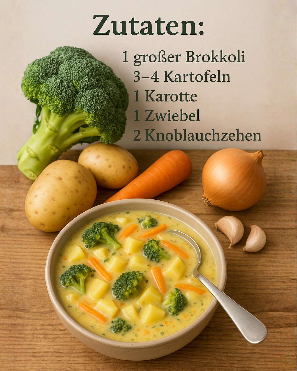 Brokkoli-Kartoffel-Suppe Einfach, cremig und voller Geschmack Diese Brokkoli-Kartoffel-Suppe ist echtes Wohlfühlessen: wärmend, sättigend und perfekt für kalte Tage. Ideal als leichtes Mittag- oder Abendessen – mit wenigen Zutaten schnell gemacht.