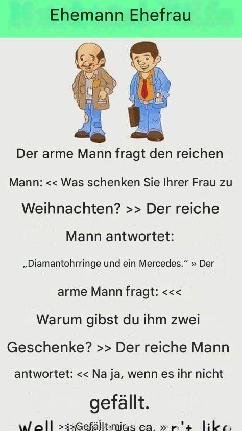 Weihnachten ist die Zeit, Liebe, Fürsorge und Geschenke zu geben und zu teilen. Der folgende Witz über zwei Freunde, einer reich, einer arm, die darüber diskutieren, was sie ihren Frauen zu Weihnachten schenken könnten, wird Sie zum Lächeln bringen. Erhalten Sie aktuelle Geschichten direkt in Ihren Posteingang!