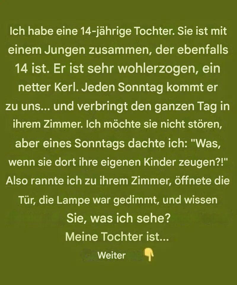 Meine Tochter ist 14. Sie ist mit einem gleichaltrigen Jungen zusammen. Er ist sehr höflich, ein netter Kerl.