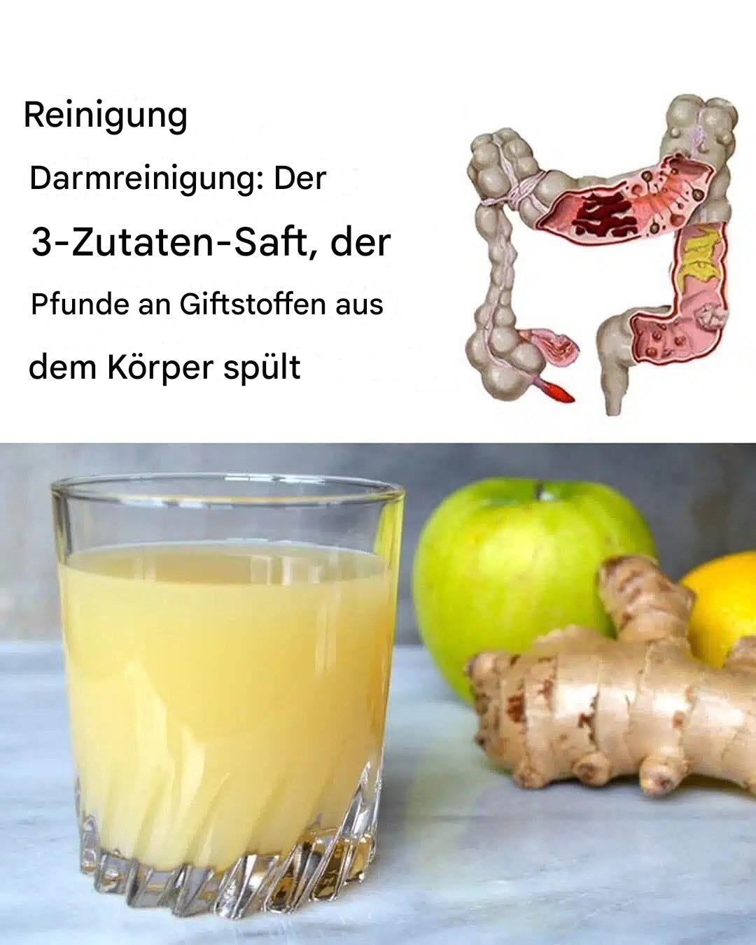 Fühlen Sie sich aufgebläht, haben Sie Verdauungsstörungen oder ein Völlegefühl? Dies sind häufige Anzeichen dafür, dass Ihr Dickdarm überlastet sein könnte. Ein träger oder verstopfter Dickdarm kann zu Müdigkeit, Verdauungsbeschwerden und anderen gesundheitlichen Problemen führen. Glücklicherweise gibt es eine einfache, natürliche Lösung, die Ihren Körper bei der Selbstreinigung unterstützt: einen Detox-Saft aus Äpfeln, Ingwer und Zitrone. Dieses Getränk hilft, Giftstoffe auszuscheiden und fördert eine reibungslose Verdauung. So funktioniert es und wie Sie es in Ihre Routine integrieren können.